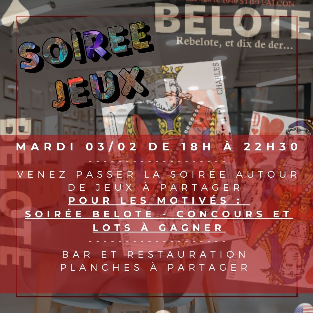 Soirée jeux de société, dès 19h. Explications et animations sur demande avec Anthony et Remy. Bar et restauration sur place. Entrée libre.
