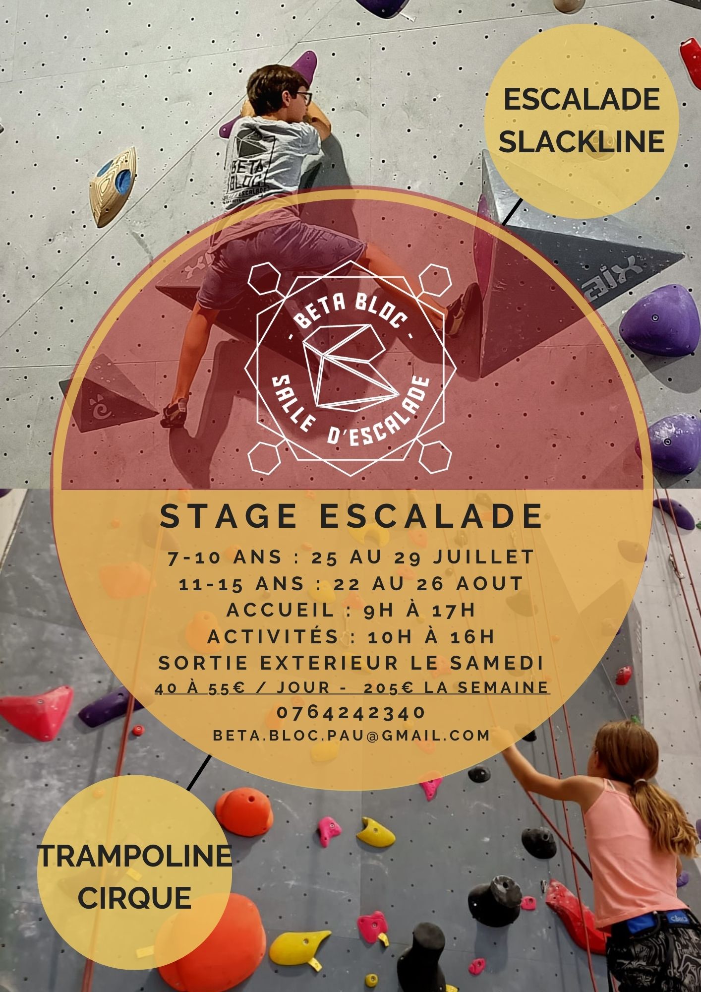 Stage d'escalade pour les Ado de 11 à 18 ans. Escalade de bloc, de voie, slackline, jeux sportifs, trampoline park, sortie en falaise.